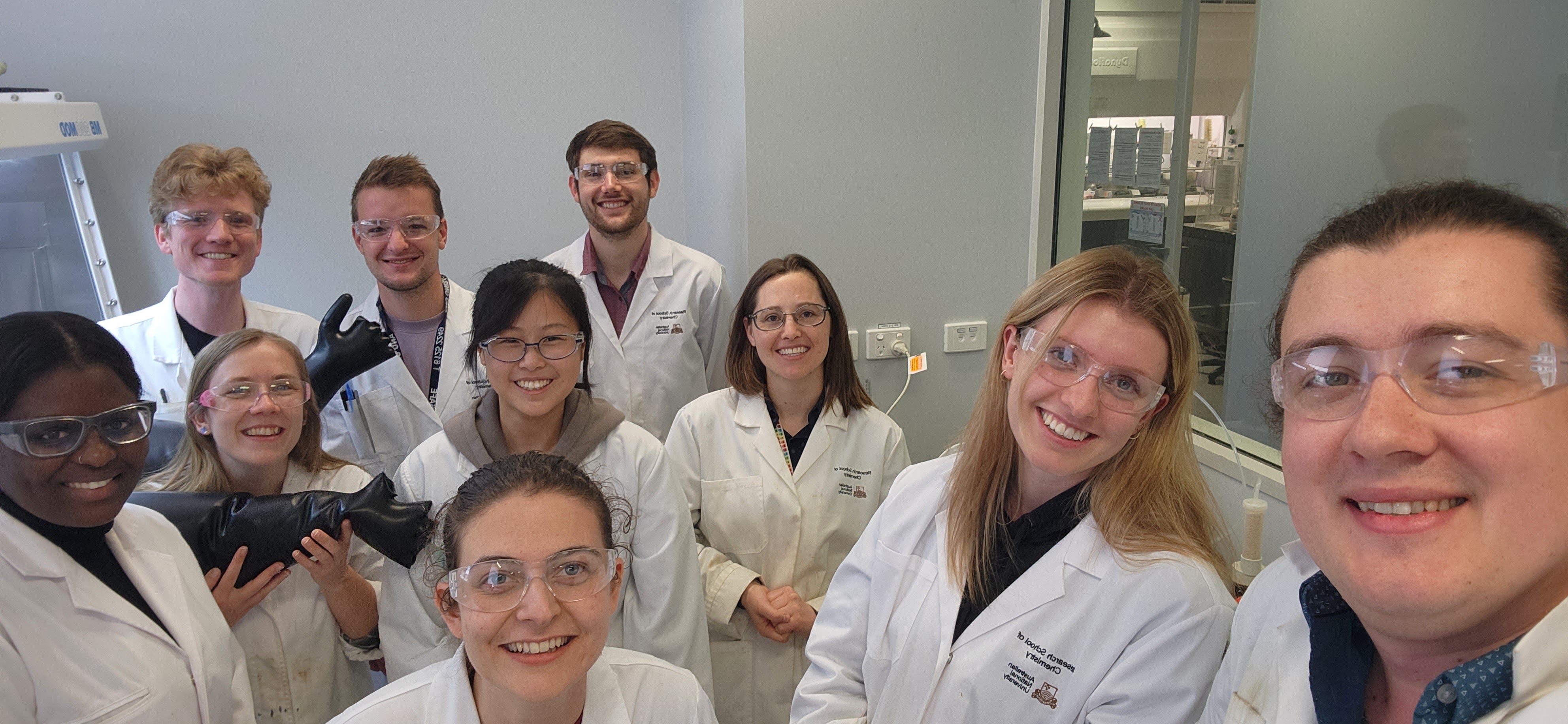 Rosie completed her PhD in supramolecular chemistry in the White group at ANU. She is now a postdoc working jointly with the White and Colebatch groups working on hydrazone cages for metal binding and catalysis. When she is not in the lab, Rosie enjoys all things outdoors (hiking, bike riding, canoeing, swimming, sailing) as well as doing things with textiles and playing her clarinet.